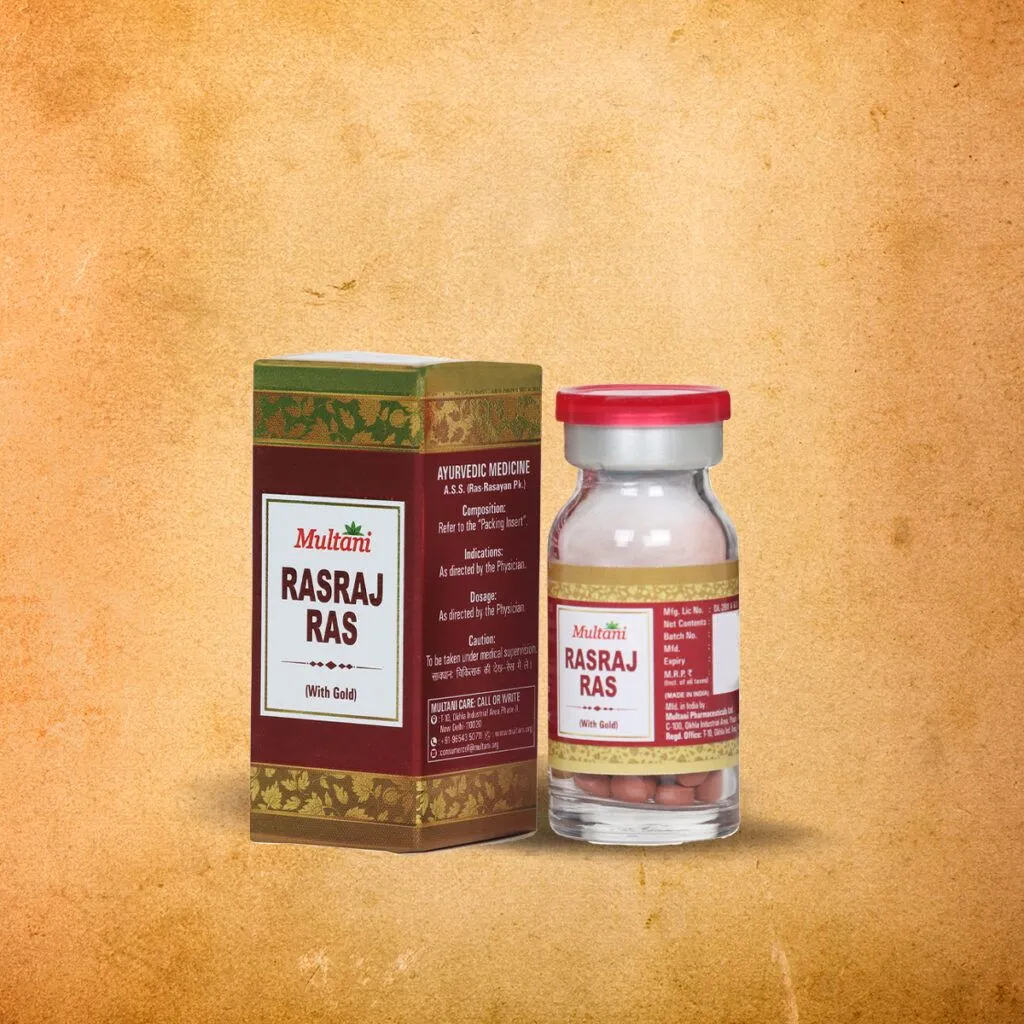 Rasraj Ras is an Ayurvedic medicine, with herbal and mineral ingredients, in tablet form It is used in treating neuro-muscular conditions